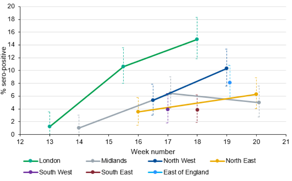 The figures show that about 8% of people have developed immunity to the virus. For a UK population that represents about 5 million people.