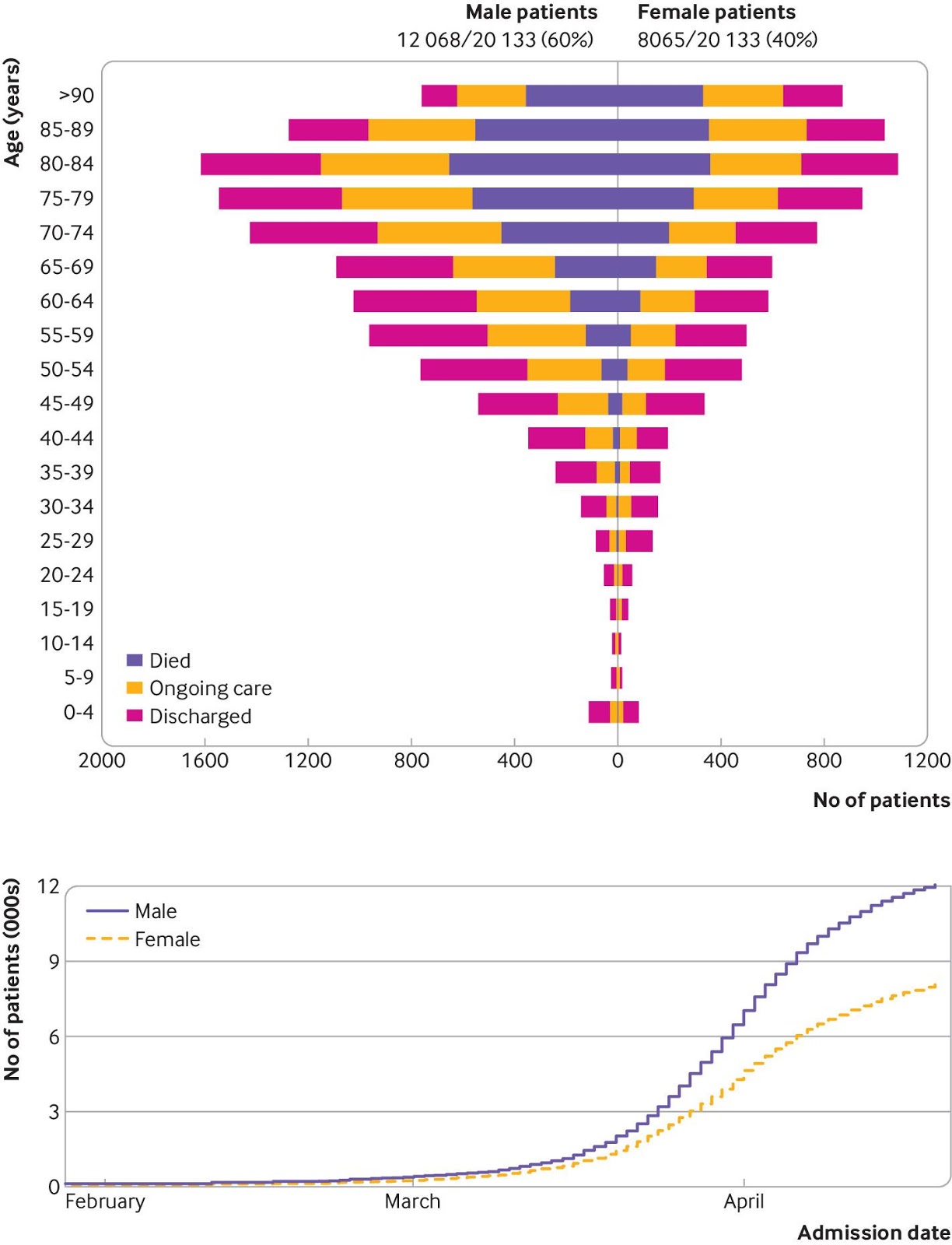 A paper from the “International Severe Adult Respiratory and Emerging Infection Consortium” otherwise know as ISARIC detailed what happened to over 20,000 hospital admissions to UK hospitals since the onset of the pandemic. This represents about 35% of the total 60,000 COVID-19 admissions in the UK in between 6th February and 19th April, when cases were increasing rapidly.