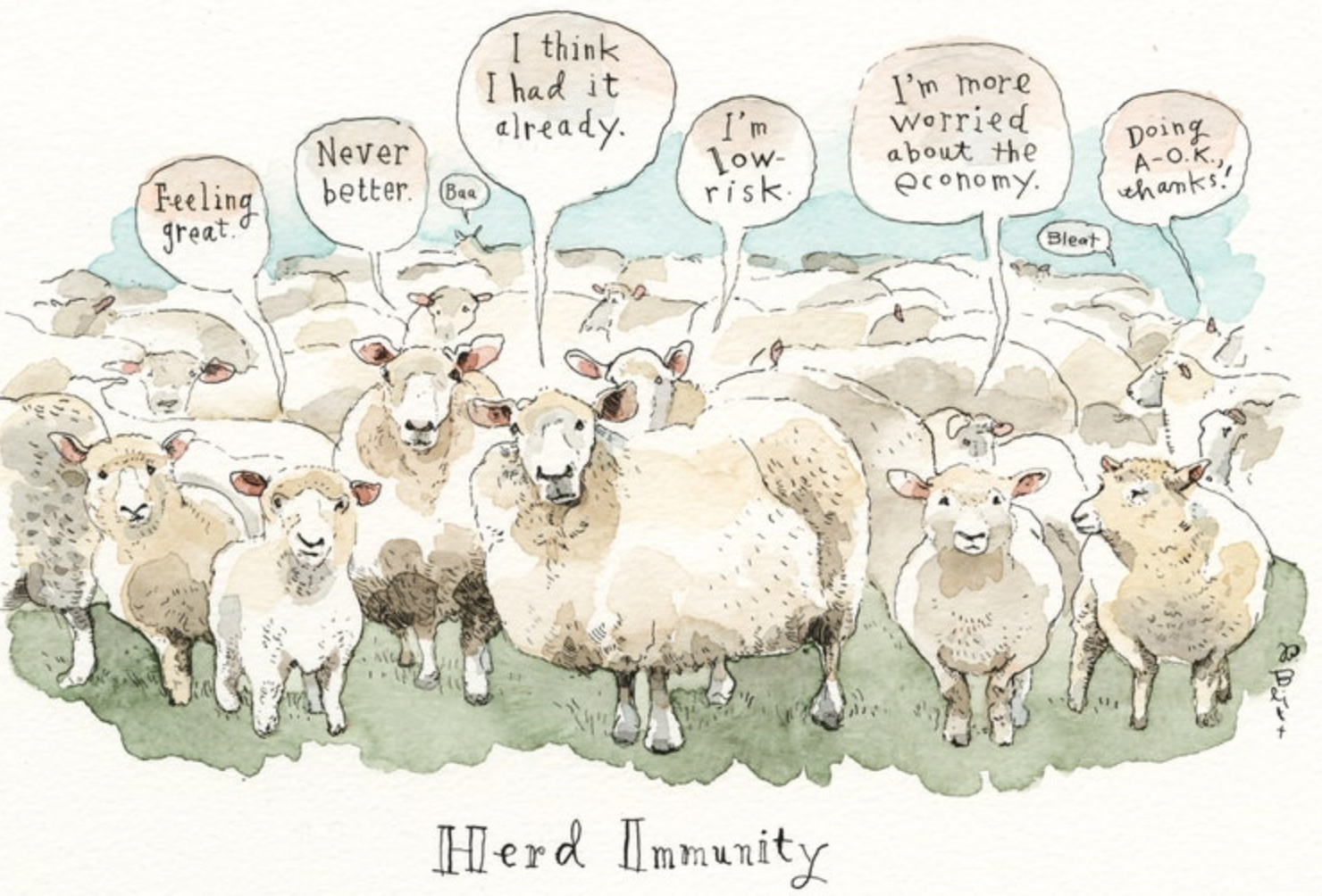 Over here I have called our tardy response to the pandemic “Herd Immunity by the back door” it now seems the back door is only very slightly open and herd immunity as far beyond the horizon as ever.