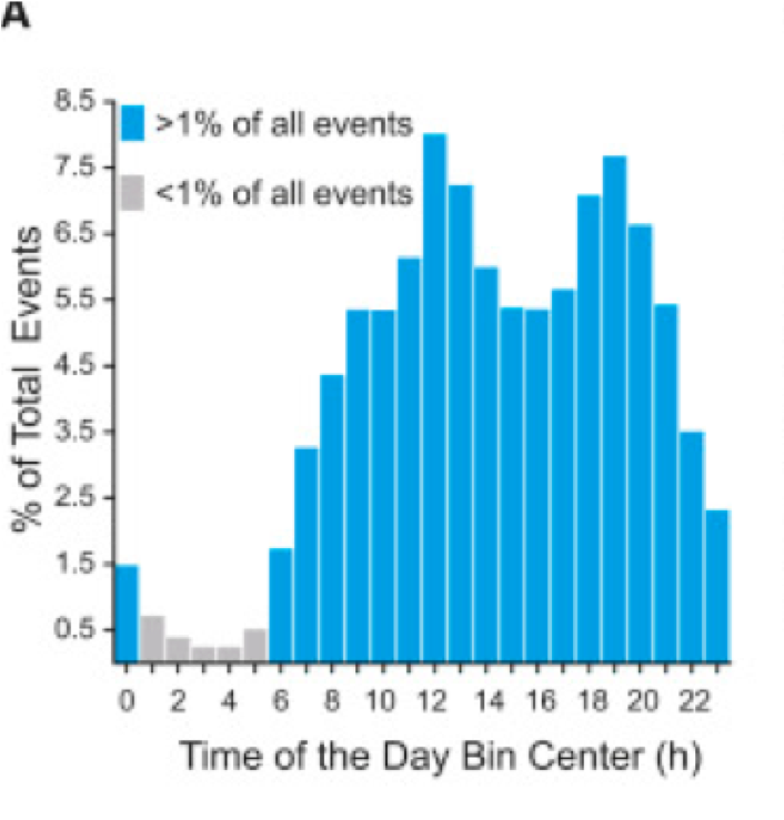 The average duration of eating was spread over 15 hours a day, a 9:15 fasting/eating pattern which takes a toll on health as I will describe below.